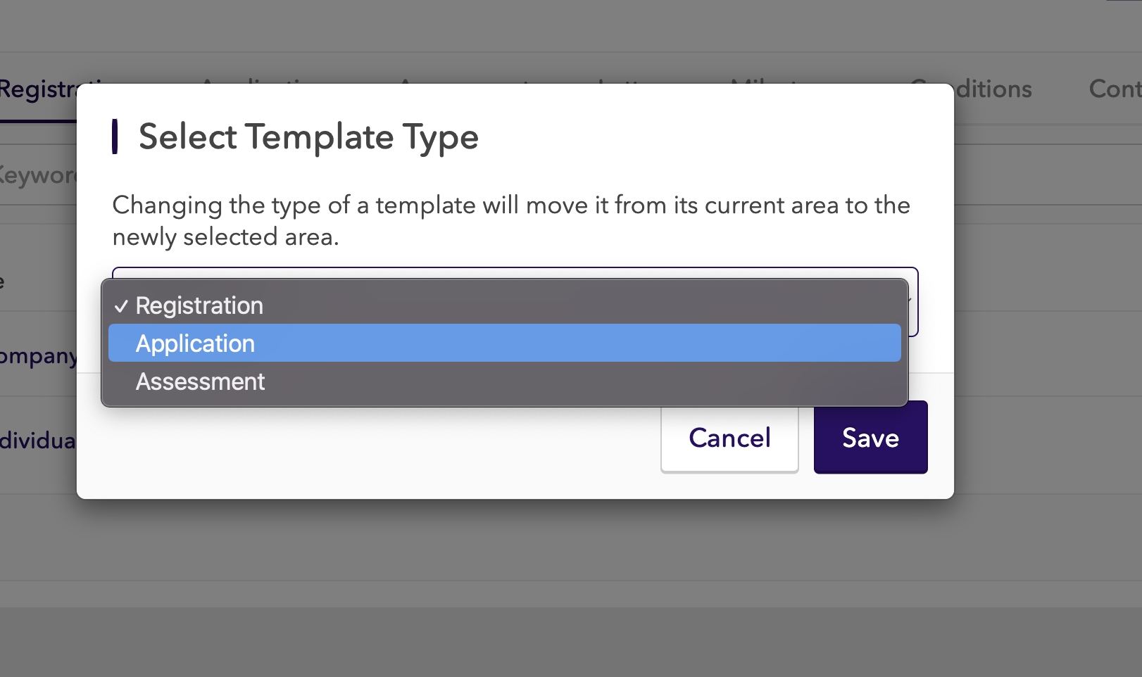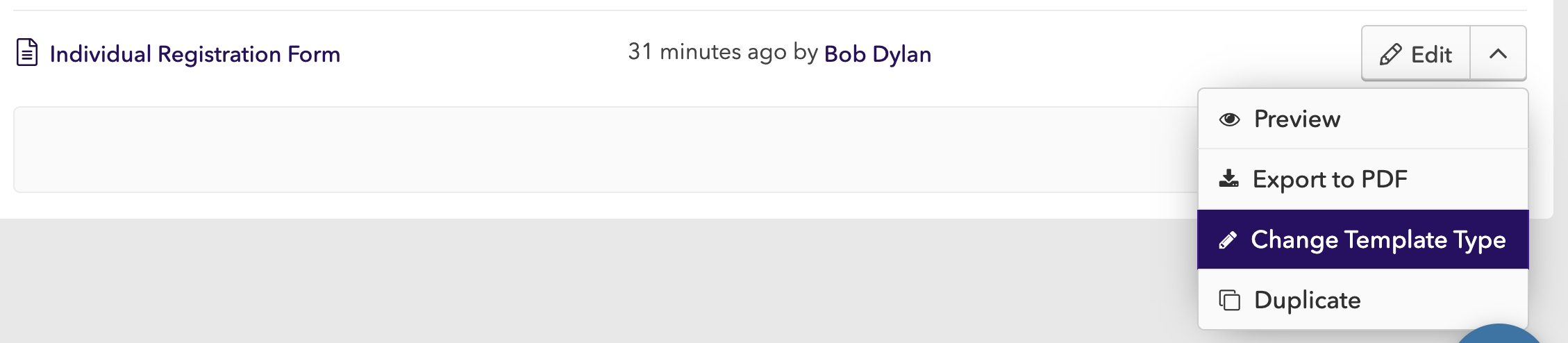 Click the down arrow on the template line you wish to move and select "Change Template Type".
