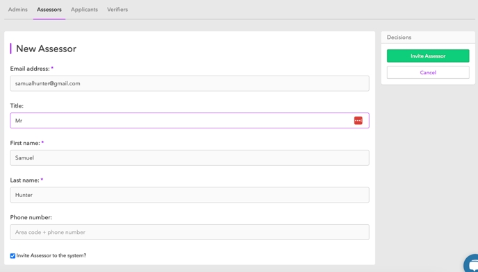 This article is for Administrators who would like to invite a new Assessor to create an account.