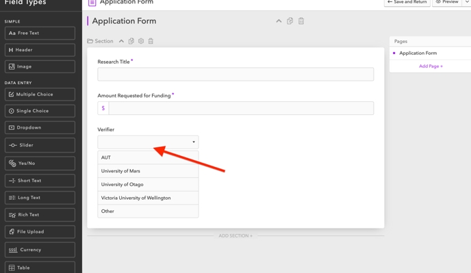 You can enable Applicants to assign a Verifier during the grant application process by adding a “Verifier Select” field to your Application Template. This field displays a list of all Verifiers in your system, and when an Applicant selects one, Tahua will automatically assign the Application to that Verifier.