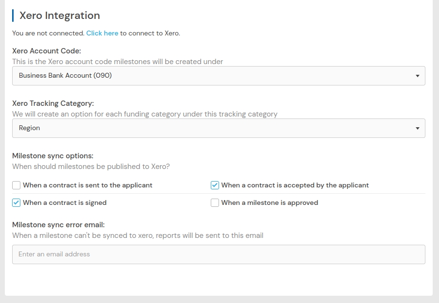 Sometimes a bill cannot be published. For example, the Bill date will usually be set to the contract start date. If this date is inside the locked period at Xero, the bill will not sync and an error will be sent to the sync error email address. The email will include a link allowing you to inspect the milestone and manually retry the sync. You can also choose a different date for the bill when you manually sync the milestone.