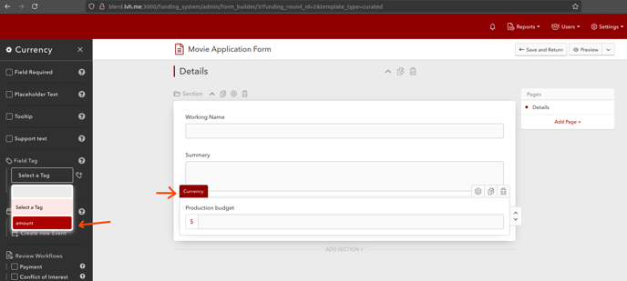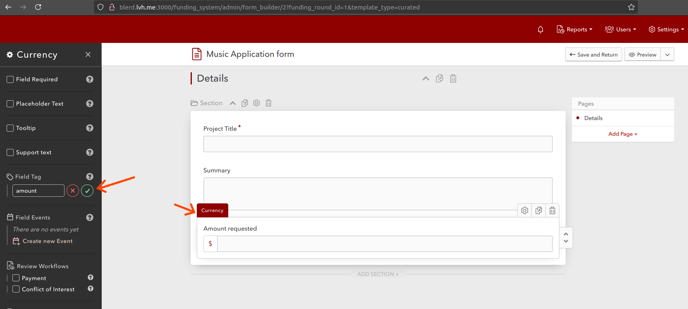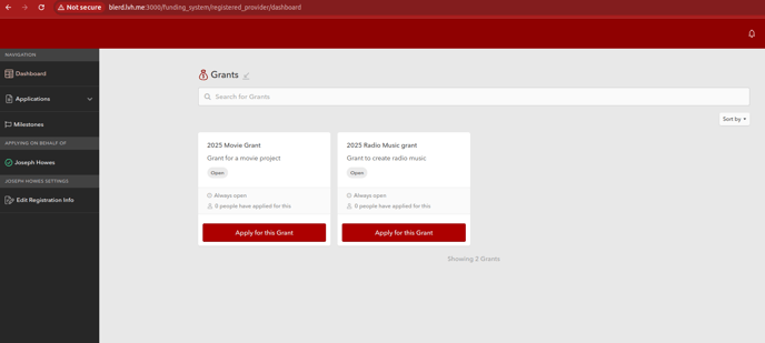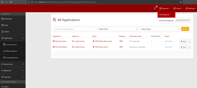 Create two grants and tag a field in each application template