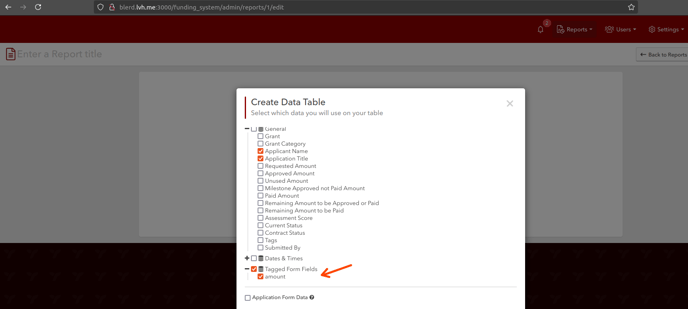 Data from different templates (forms) can be pulled into the same report with the use of tags